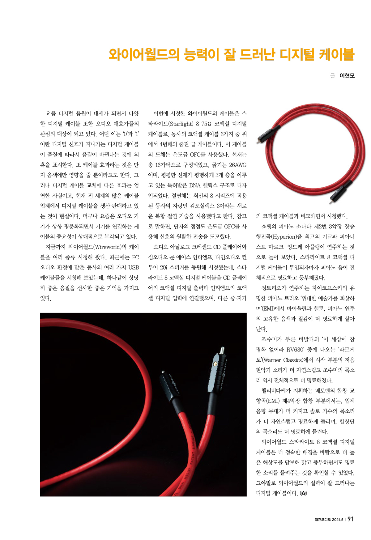 Wireworld Starlight 8 75¥Ø Coaxial Digital Cable ¿ÍÀ̾î¿ùµåÀÇ ´É·ÂÀÌ Àß µå·¯³ µðÁöÅÐ ÄÉÀ̺í